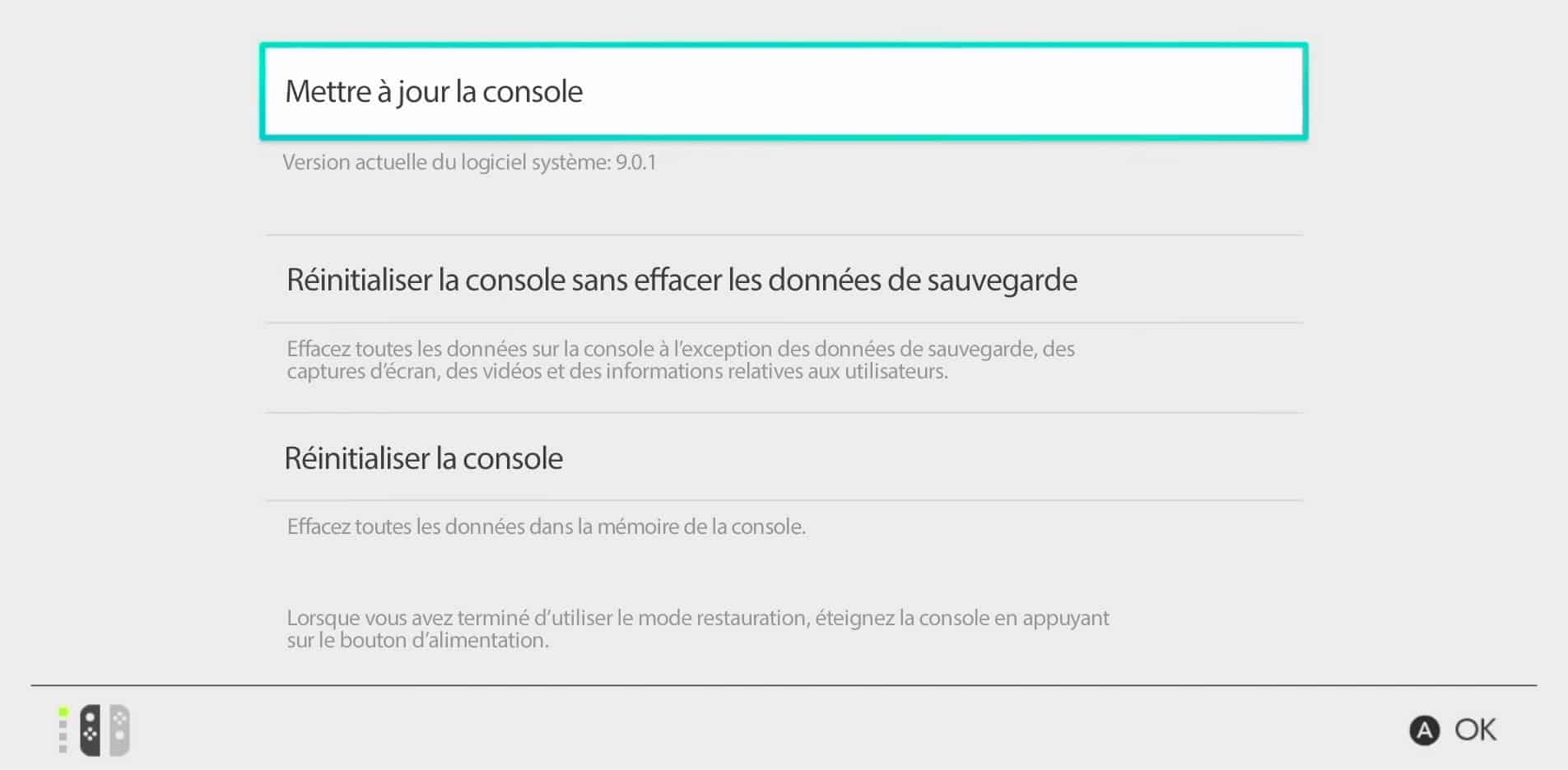 - Réinitialiser la console sans effacer les données de sauvegarde