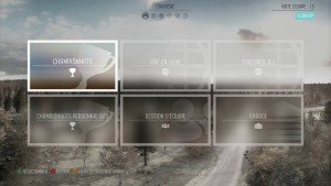 La première chose que l’on remarque dans ce Dirt Rally c’est sa sobriété dans les menus. Point de fioritures, c’est assez neutre, l’accent est mis sur l’expérience au volant et ça c’est de bonne augure. Le menu est simple, mais clair, et l’on distingue directement les différents modes disponibles.
