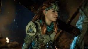 L’univers de Horizon Zero Dawn, non content d’être original, est tout simplement magnifique. Dans un monde ouvert aussi immense, on aurait pu s’attendre à certains problèmes mais vraiment pas grand-chose à signaler je vous avoue. On note quelques ralentissements de temps à autre mais c’est vraiment rare. J’ai été vraiment surpris d’une si belle qualité et ce même sur PS4 normale (je n’ai pas encore de PS4 Pro). Les personnages sont superbes avec tout leur univers et leurs costumes d’une rare originalité. Les visages, en particulier celui d’Aloy est superbe bien qu’un peu brillant parfois et doté d’expressions perfectibles.