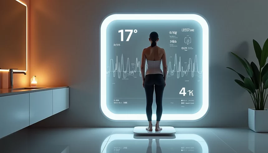 L’Omnia se distingue par sa capacité à combiner les fonctionnalités d’un miroir classique avec celles d’une balance connectée ultra-sophistiquée. Mais ce n’est pas tout : l’appareil intègre également des capteurs avancés capables de mesurer une multitude de paramètres physiologiques.