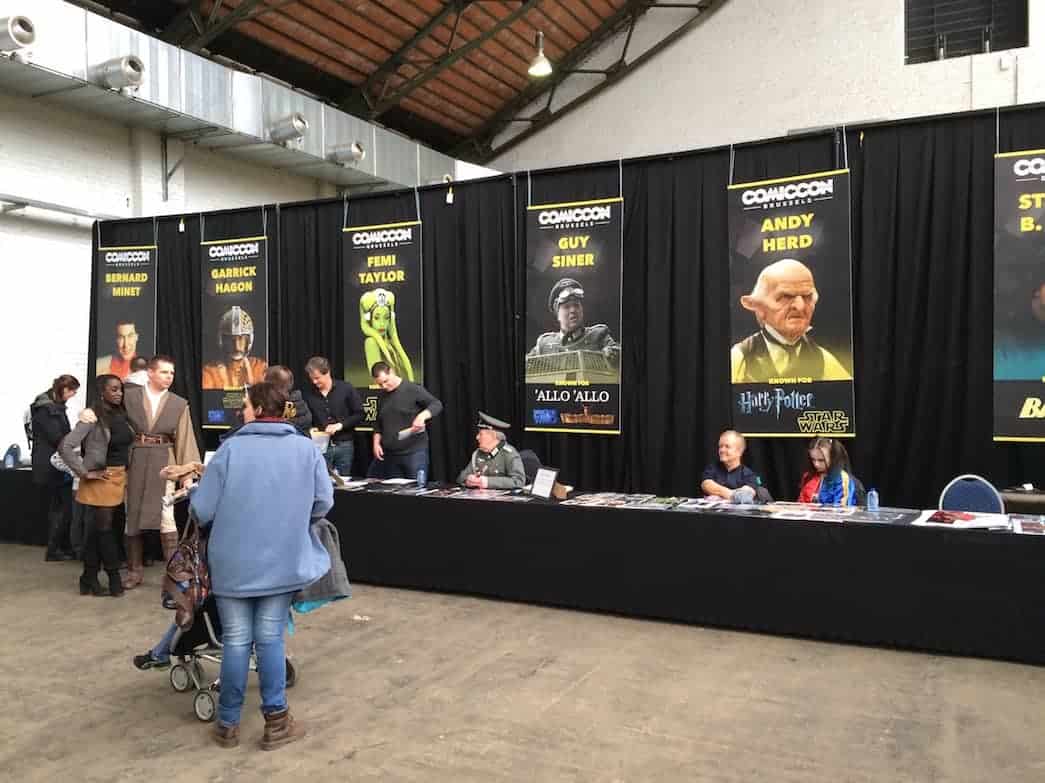 Comme son nom l’indique la Comic Con Brussels 2017 est une convention avec comme thème l’univers des comics et ses dérivés (films, goodies, posters, figurines, cosplay…). Vous aurez aussi compris que celle-ci se déroule à Bruxelles en Belgique, sur le site Tour & Taxi pour être précis. On y retrouve des stands divers, dans deux palais, vendant des comics VO/VF, occasion/nouveau, des déguisement, des t-shirts (beaucoup de t-shirt !), des figurines et puis aussi des Guest auprès desquels vous pourrez demander un autographe ou avoir des photos lors des séances prévues à cet effet.