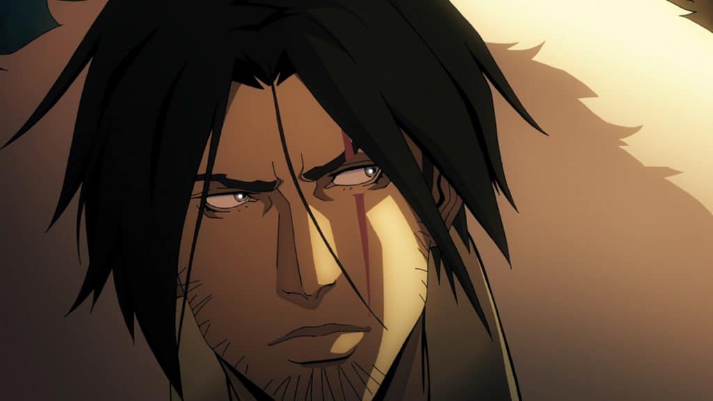 Avant d’analyser plus en détails la série, quelques informations contextuelles. Le dessin animé scénarisé par Warren Ellis s’inspire grandement de Dracula III : Dracula’s Curse, sorti sur NES en 1992. Sans entrer dans les détails, Dracula souhaite se venger du peuple de Valachie, après que l’Église a tué sa femme Lisa, brûlée pour sorcellerie. Trevor Belmont, dernier fils de la famille Belmont exilée de ces terres, est le dernier rempart contre la bête et son armée. Voilà le pitch de départ que les fins connaisseurs apprécieront, au même titre que les néophytes, d’ailleurs.