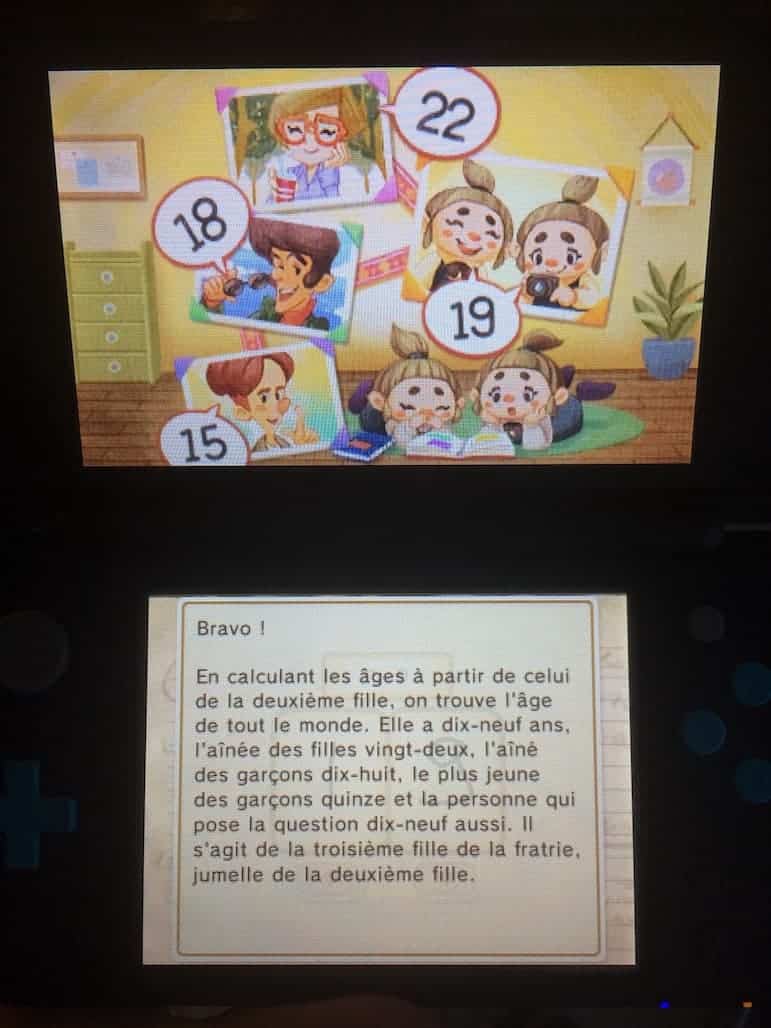 L’aventure Layton et la conspiration des millionnaires est un bon jeu. J’ai eu beau être frustré par moment, déçu de la façon dont sont amenées les énigmes il n’en reste pas moins agréable de les résoudre. Si je devais choisir de voir mon fils de 11 ans jouer à Pokemon ou avec Katrielle je n’hésiterais pas une seule seconde. Tandis que lui ferait des devoir de vacances sans même s’en rendre compte, elle est pas belle la vie ?