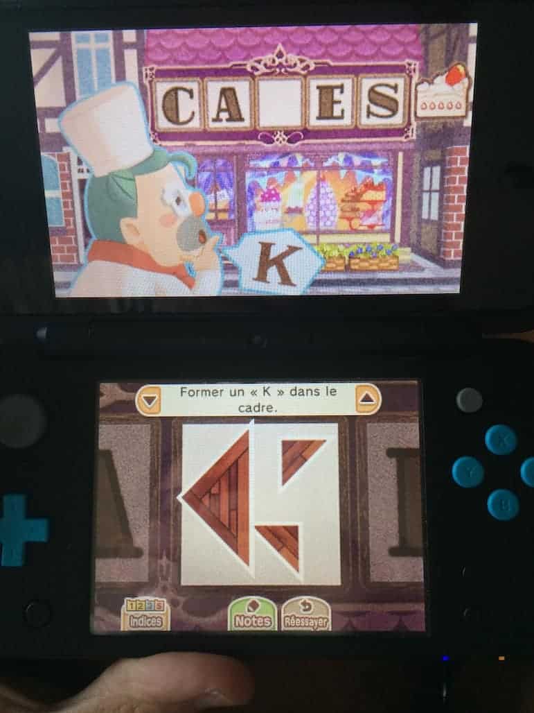 La première d’entre elles vous demandant de recréer une lettre pour une enseigne m’a bien plue. Au passage le système de prise de note (que vous pouvez voir sur l’image de droite) est excellent. Il permet vraiment de bien visualiser les énigmes, oubliez tout de suite votre bloc notes celui de Katrielle est bien plus utile.