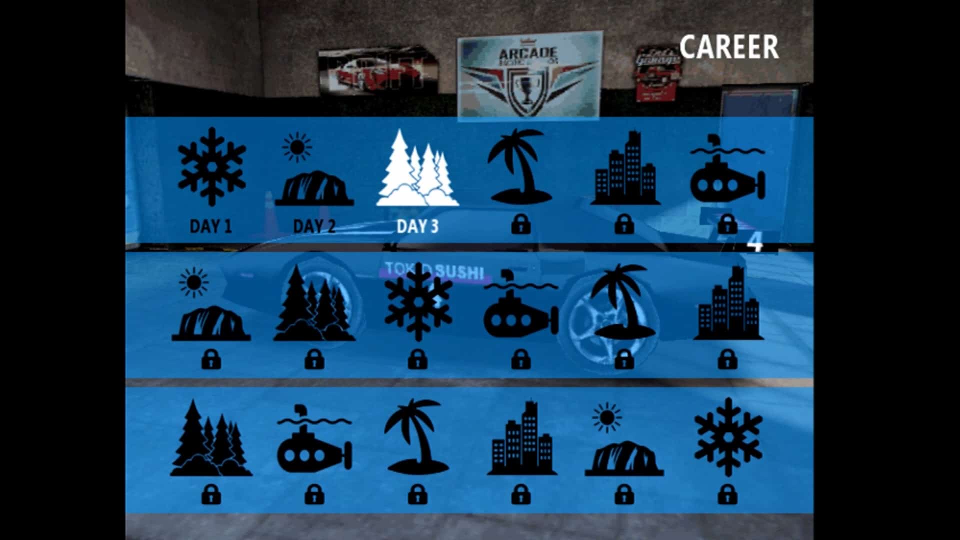 Même si j’adore les idées du jeu, je suis déçu par deux aspects inattendus : l‘obligation de régler les véhicules au fur et à mesure que l’on avance dans les circuits, et la difficulté exacerbée des premiers défis. Après digestion de ces deux désillusions, j’ai pu appréhender les mécanismes et les secrets du gameplay pour y trouver mon compte. Les véhicules disponibles sont tout bonnement hallucinants de clins d’oeil et de nostalgie, les sensations de drift, lorsque je les ai enfin maitrisées, rappellent l’excellent feeling du premier Ridge Racer sur PSONE et le plaisir de découvrir un vrai nouveau jeu sur la Sega Dreamcast est juste jouissif.