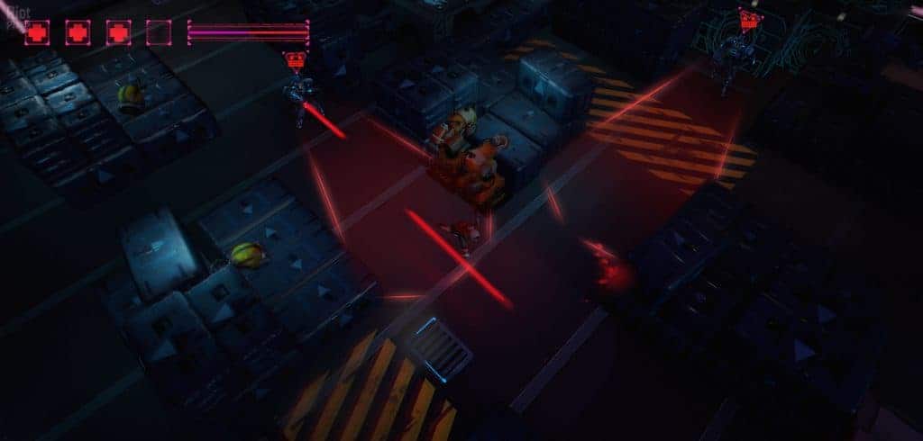 Quand j’ai vu les première images du jeu, mon petit cerveau a fait un lien avec l’ancien jeu de Bullfrog : Syndicate. Au final après avoir été revoir les images je ne vois pas très bien pourquoi car si ce n’est le coté cyberpunk et la vue de 3/4, force est de constater qu’ils n’ont pas grand chose en commun. Et c’est bien dommage en fait, car après 5min de jeu j’avoue que la seule chose qui me forçait à rester c’était le fait d’être en présence du développeur. Je n’aurais pas voulu le vexer. Le jeu n’est pas mal visuellement mais je me suis ennuyer à courir dans de simples couloirs en tapant dans le dos d’ennemis aussi laids que débiles.