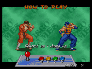 Il se contente en effet d’apporter un personnage supplémentaire, Saizo le ninja badass, un réglage au niveau du handicap en mode versus et quelques modifications graphiques dans les décors. Bizarrement, un personnage a troqué sa nationalité italienne contre la française. Je suppose que c’est une histoire de coupe du monde de football… En 2016, le titre sort officiellement dans un format AES inédit! C’est en 2020 que PixelHeart et JoshProd récupèrent la licence Visco et continue de la distribuer au sein d’un catalogue AES de plus en plus fourni.