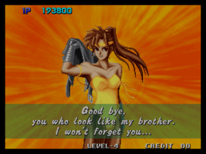 A coté de cela, les décors brillent par leur richesse, les personnages, bien que souvent calqués des belligérants des autres ténors du vs fighting de l’époque, parviennent à dépasser leurs égéries et dégagent une classe folle ! Le nombre des avatars est assez limité mais tient la route. Entre Sho (un Ryu upgradé), Alsion III (Le pharaon inspiré de Dhalsim), Dao Long (Le Bruce Lee-like façon Kim Dragon dans World Heroes), Tia (la babe mix entre Chun Li et Mai), … vous aurez l’embarras du choix. Les musiques sont bien pêchues, les bruitages classiques et la voix off légèrement nasillarde confèrent un côté très manga à l’expérience.