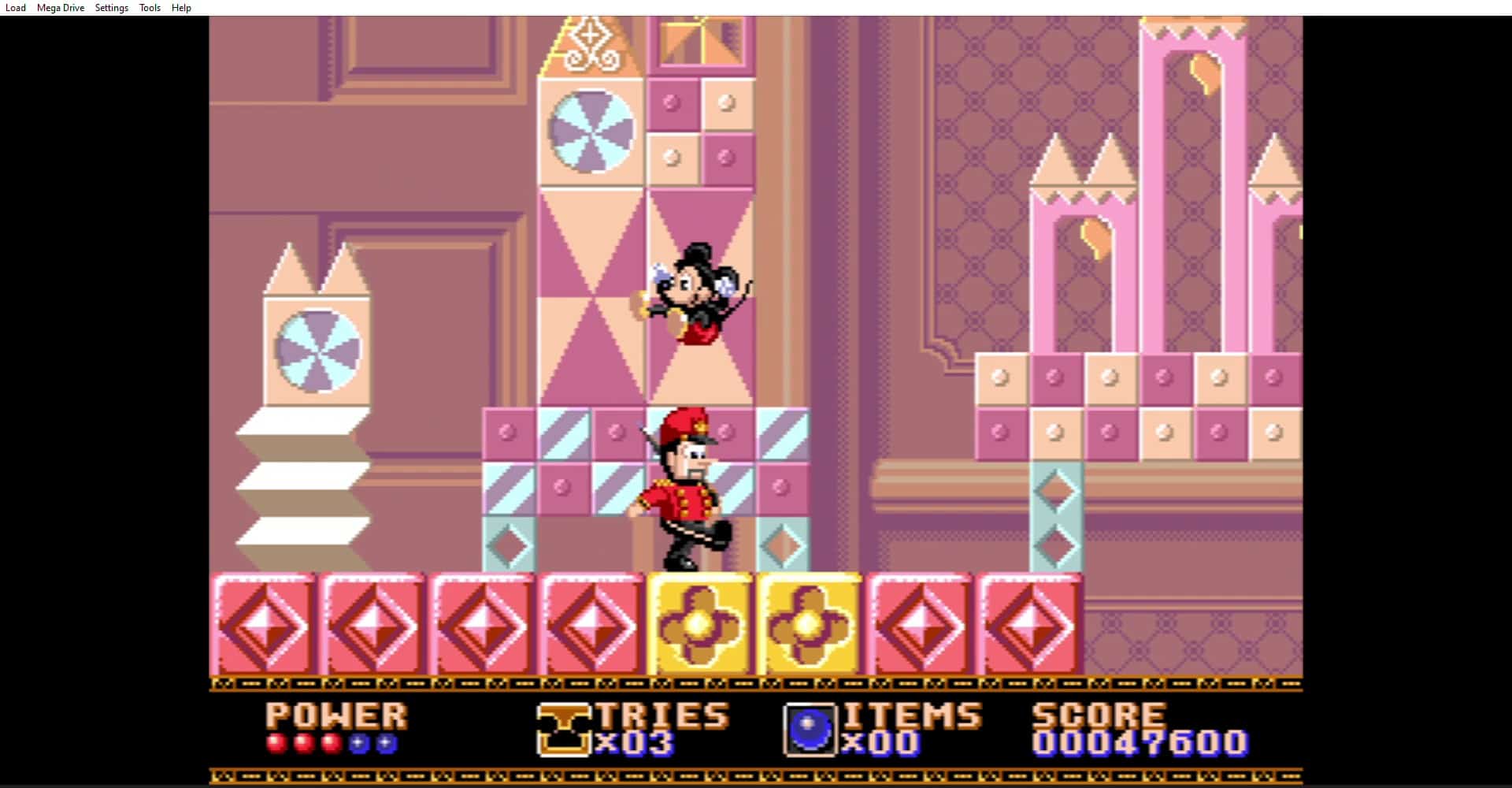 L’environnement technique quant à lui est tout à fait révolutionnaire. Les mélodies sont fluides, mignonnes, justes et enchanteresses. Les graphismes sont absolument flatteurs pour l’époque et les 64 couleurs affichables en simultané de la Megadrive. La souris égérie de Disney affiche une dégaine flegmatique, les bras ballants et arbore un sourire angélique. Elle effectue même des sauts agiles avec l’aisance sportive de Carl Lewis en 1988 à Séoul. Le grain de l’image, légèrement flou, donne une impression de dessin animé encore jamais vue sur Megadrive.