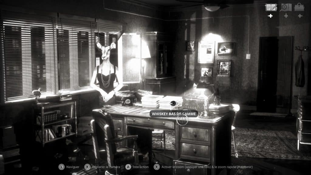 La grosse particularité de ce jeu, outre son univers, c’est que tous les personnages ont des têtes d’animaux sur des corps d’humains. Ceci conférant à l’ensemble un cachet qui ne laissera pas indifférent. Certains adoreront, d’autres trouveront cela carrément glauque. Votre mission consistera à mener des interrogatoires et à analyser les indices afin de résoudre le mystère.