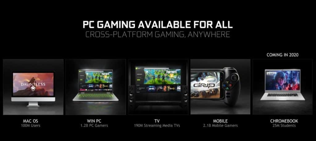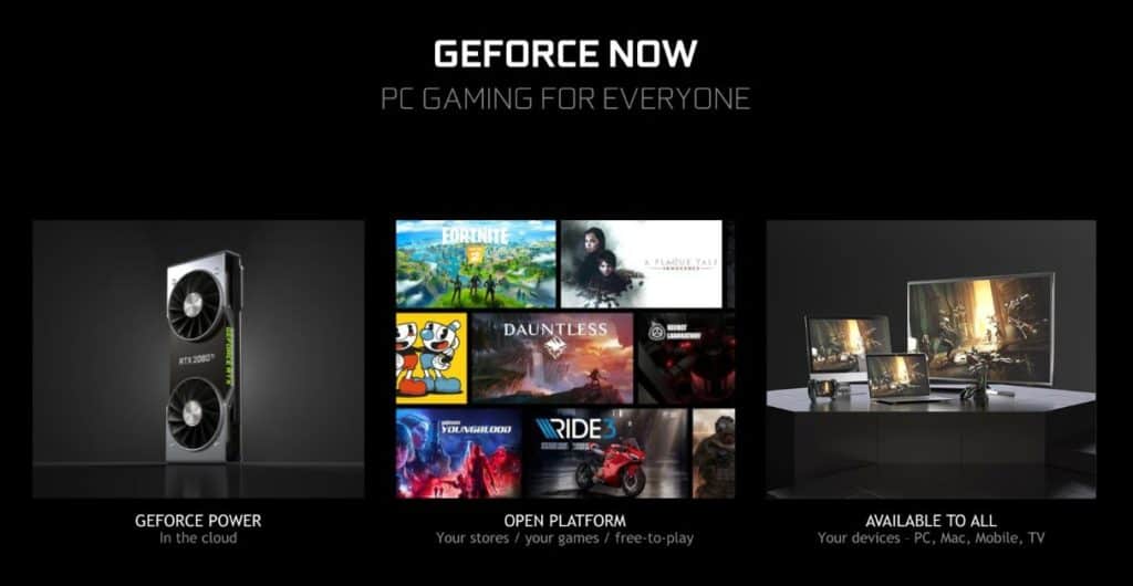 L’avantage de NVIDIA GeForce Now, c’est qu’il ne s’agit pas seulement d’une plateforme qui vous donne accès à des jeux. C’est en fait un réseau de serveurs, qui vous permet de jouer à n’importe quel type de jeu, même en haute définition, sans que vous ayez besoin d’acheter un ordinateur de gaming. En d’autres termes, c’est comme si NVIDIA vous prêtait, en tout temps, des ordinateurs ultraperformants, capables d’opérer les jeux les plus gourmands en capacités, mais depuis votre appareil. Peu importe ses capacités initiales, sa mémoire vive, et sa résolution.
