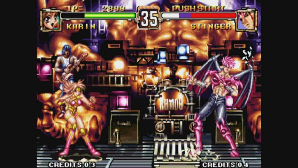 Le perso principal est le Gowcaizer. Il est équilibré et classique. Des filles légèrement vêtues apportent encore une dose de légèreté au roster, et une pointe d’érotisme. Elles sont plus fluides et assez fun à contrôler. Notez que les persos ont aussi la possibilité, via un coup spécial plus ou moins intuitif, de déclencher un avatar mini pour les aider, certains sont bien casse-pieds à contrecarrer !