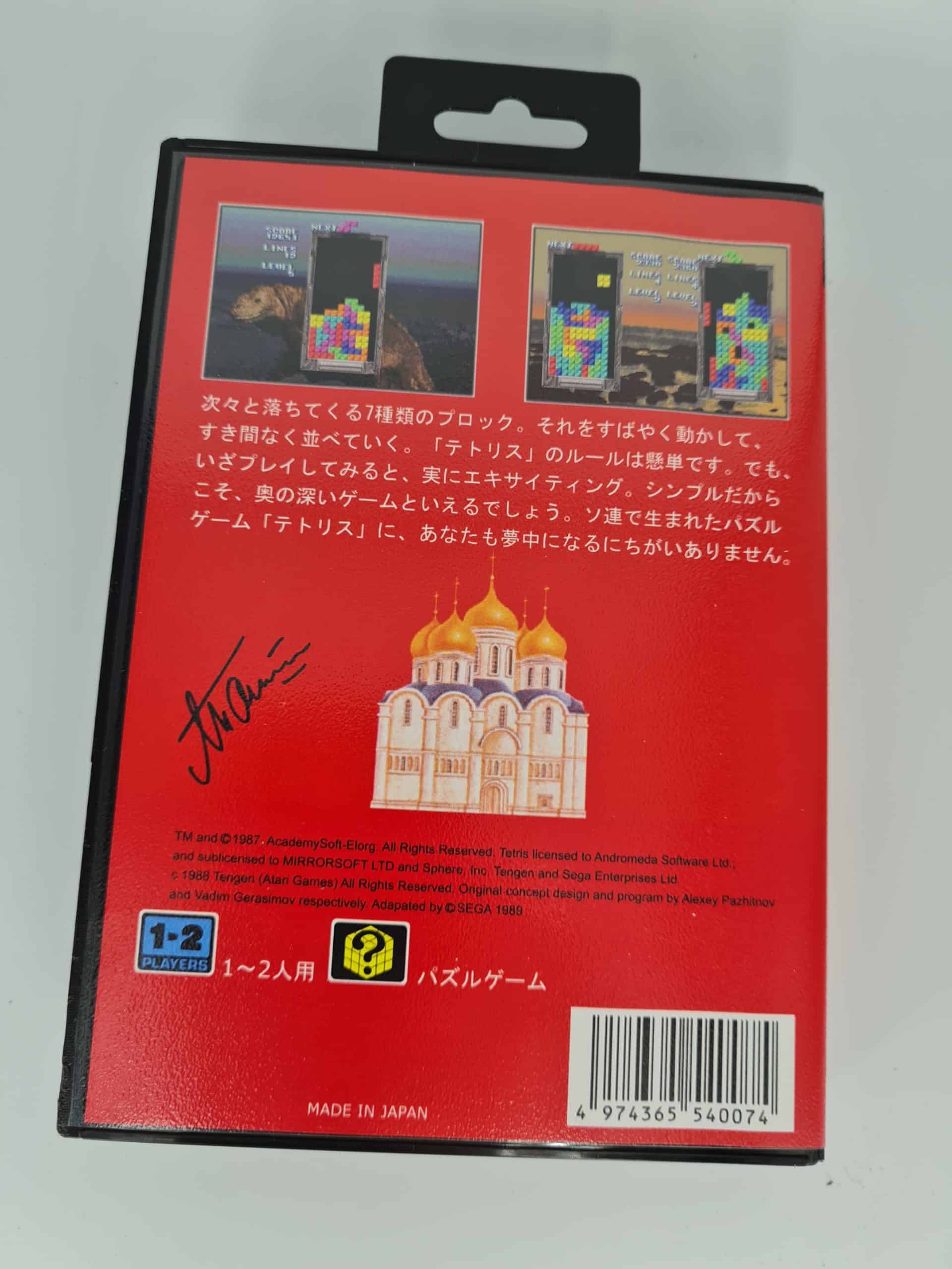 Bien qu’ayant vu le jour sur à peu près toutes les consoles, il est une version de ce bon vieux Tetris qui suscite les convoitises des retrogamers les plus collectionnant : le portage de Tetris sur la 16-bit de Sega. La Megadrive n’a en effet jamais eu la chance de se laisser bercer par les mélodies de Korobeiniki car à l’époque, Nintendo avait acquis les droits de la licence, en même temps que son exclusivité synchronisée avec le lancement de sa Game Boy, en 1989.