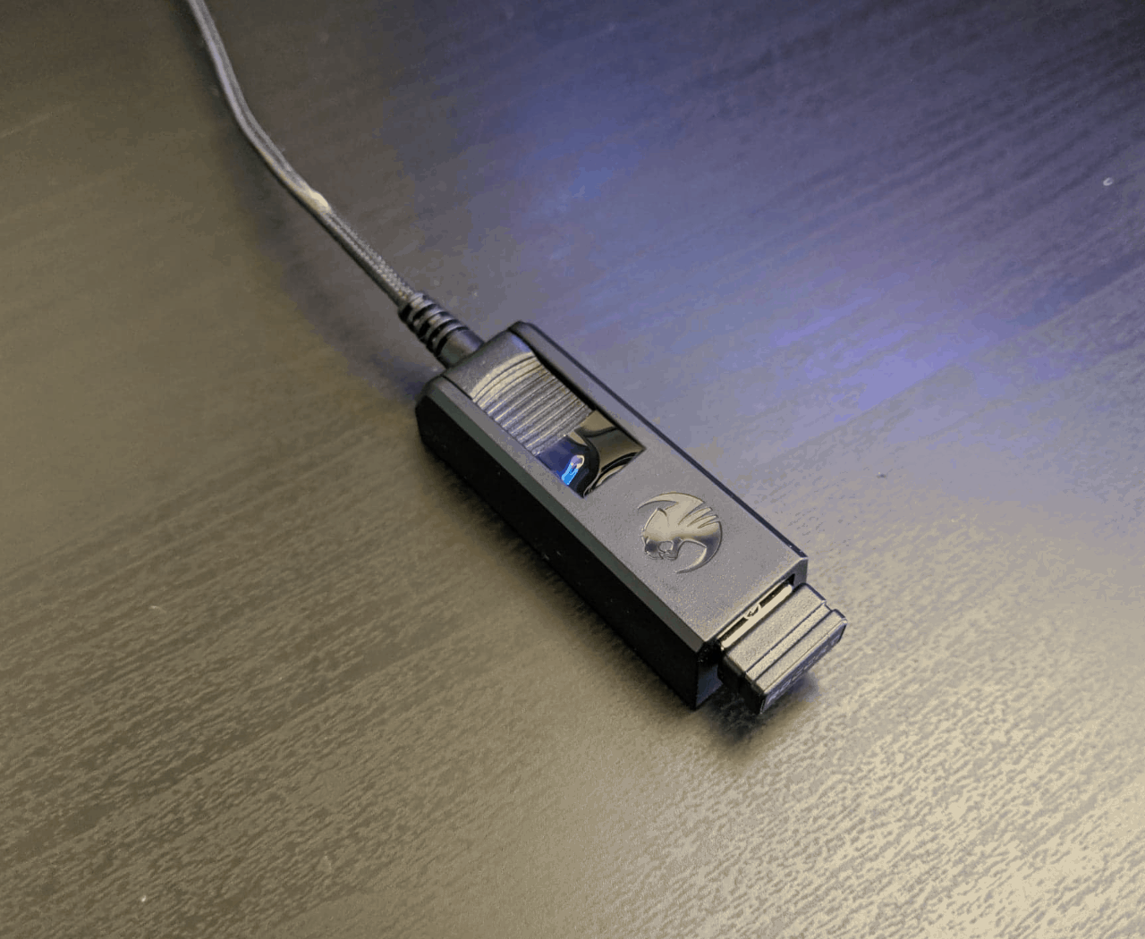 Petite remarque : Roccat fait fort en estampillant chaque câble du nom du périphérique du côté USB. C’est peut-être un détail pour vous mais pour moi qui ai pour habitude de redéfinir l’emplacement de mes périphériques sur mon bureau et donc de les débrancher/rebrancher régulièrement, ça veut dire beaucoup. Je peux aisément identifier le câble qui est relié à ma souris ou à mon tapis RGB. Bref, une petite fonctionnalité qui fait plaisir.