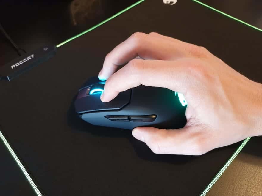 Petit bémol, en tant que gaucher, j’aurais aimé que cette souris propose des boutons sur le côté droit de la souris. Ne trouvant aucune souris sans fil qui me convienne, je me suis vu contraint et forcé de m’habituer à utiliser la souris de la main droite. Je peux donc pardonner cela à Roccat mais tous les gamers ne feront pas cette concession.