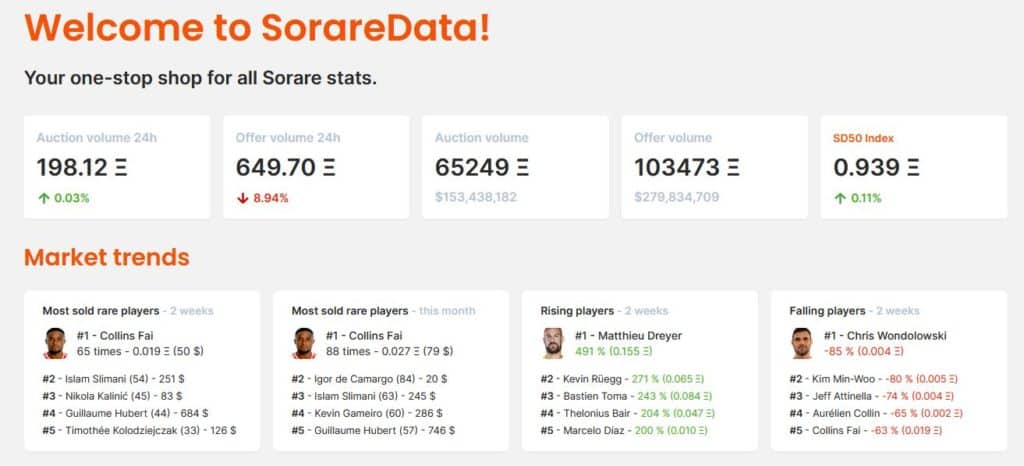 SorareData s’adresse non seulement aux personnes qui souhaitent performer dans le jeu, mais également à ceux qui souhaitent gagner de l’argent grâce à la revente de leurs cartes.