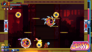 Voici la touche originale de ce jeu : revisiter Megaman à la sauce Roguelike ! Les niveaux sont générés de manière aléatoire et sont très bien construits. Vous devrez évoluer dans des phases de plateforme plus ou moins complexes, tout en esquivant les salves ennemies et en venir à bout bien sûr. Tout au long de votre aventure, vous aurez également la possibilité de pouvoir améliorer votre équipement, vos caractéristiques (vitesse, force, défense…), ainsi que vos différentes attaques. Les jetons, récoltés lors de votre run, vous serviront à acheter des boost en point de vie, énergie… A noter que seul le mode facile vous octroie 3 vies au début de votre partie.