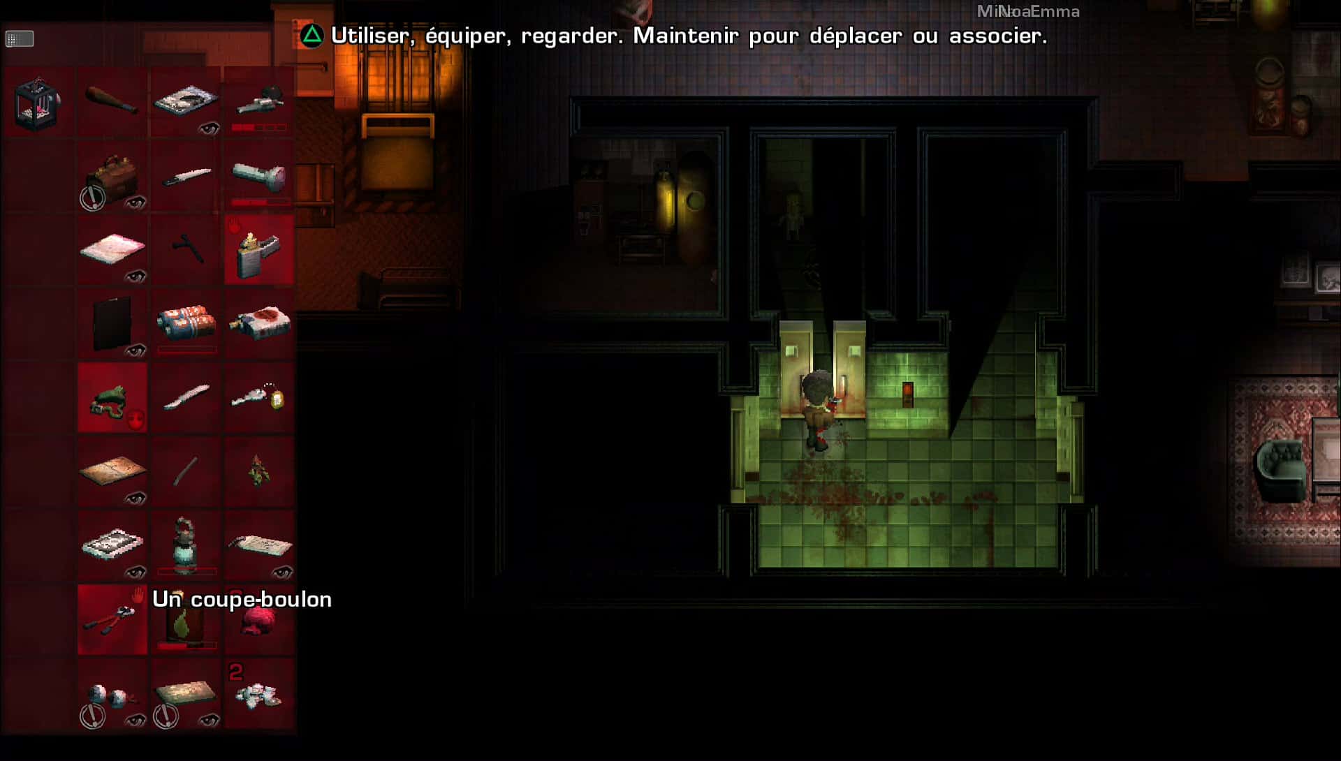 Pour tout vous dire, le plus gros point noir de 2Dark se situe au niveau du gameplay. Tout d’abord, afin d’apprendre les rudiments, vous verrez apparaître un écran avec toutes les commandes et puis, démerdez-vous. Pas évident de tout retenir même si on peut y retourner dans les menus. Là où le bats blesse sérieusement c’est que l’environnement est sombre et quand je dis sombre, c’est trop sombre, au point de ne pas toujours savoir quoi faire. Je comprends l’intérêt de devoir avancer à tâtons avec une lampe de poche mais cela rend le jeu extrêmement difficile et frustrant. Enfin, votre frustration grandira encore avec l’utilisation de l’inventaire. Basé sur des mécaniques éculées, celui-ci est vraiment pénible à utiliser et il m’est arrivé de mourir simplement car je n’arrivais pas à accéder assez vite à une arme.