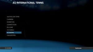 De prime abord, AO International Tennis semble disposer d’un contenu assez conséquent. Oui mais ça c’est avant d’aller plus en profondeur. Même si l’on retrouve différents modes comme exhibition, compétition, Australian Open, en ligne, carrière et enfin entrainement. On s’apercoit rapidement que le jeu est incomplet. En effet, le nombre de joueurs disponibles est très limité. Seuls Nadal, Goffin et Isner sont les connus du côté des hommes…et je ne parle même pas des femmes presque ignorées. En termes de tournoi, vous pourrez seulement jouer à l’Australian Open, les autres tournois n’étant pas officiels.