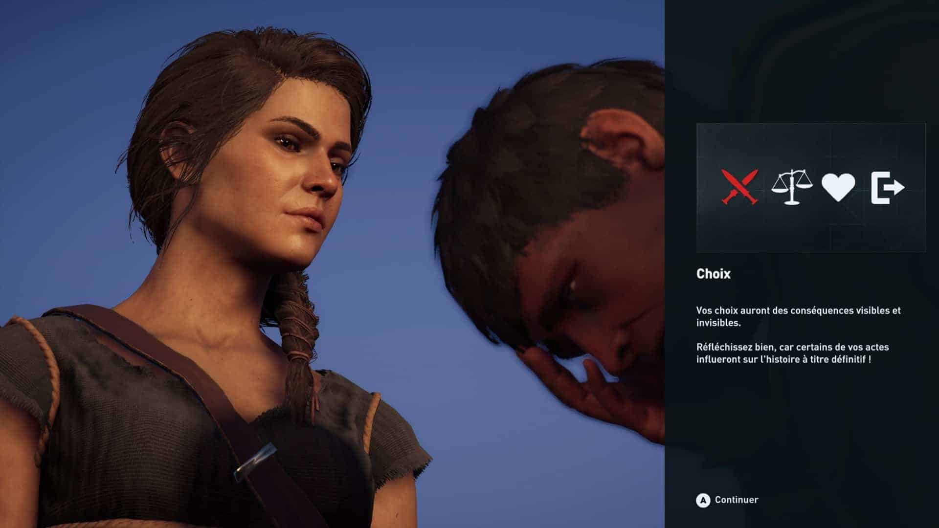 Parlons-en donc de ce scénario. Vous allez pouvoir choisir de jouer avec Kassandra ou Alexios. Ce choix sera irréversible. Rien que ça c’est génial, parce que pour avoir choisi Kassandra je suis déjà impatient de pouvoir finir le jeu afin de le refaire à nouveau d’un autre point de vue.