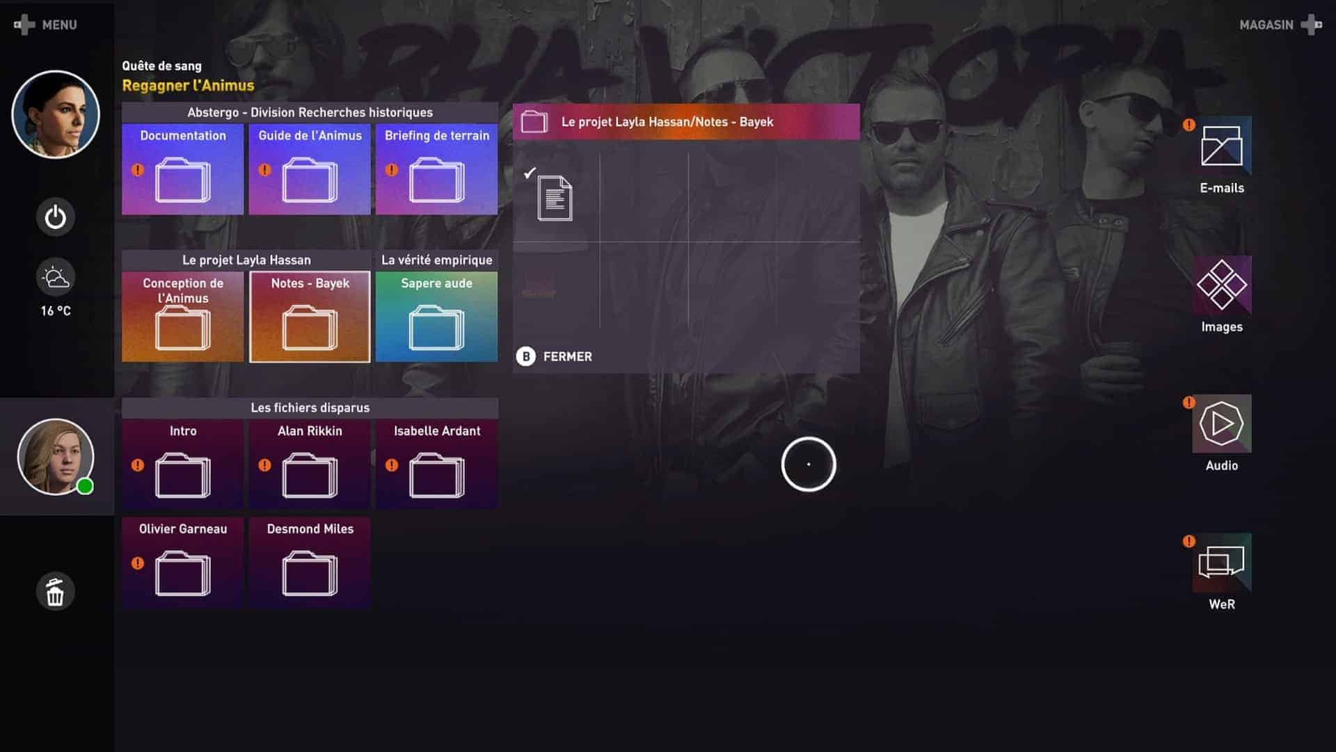 Vous l’aurez compris jusqu’ici Assassin’s Creed fait quasi un sans faute. Mais qu’en est-il de l’histoire que l’on suit depuis notre trop regretté Desmond ? Et bien on s’en fiche un peu ! Ici pas de réel résumé mais bien des dossiers et des mails à foison qu’il vous faudra disséquer si vous voulez comprendre le tout ou simplement vous rafraichir la mémoire. Les passages dans le temps présent se font rares et ne servent finalement qu’à pouvoir accéder à toutes ces informations, mais n’espérez pas trop de ce côté là. L’animus est devenu un gadget portable et vous découvrirez que les moyens d’utilisation ont quelque peu changé. Je ne dis pas pour autant qu’Ubisoft a totalement mis de côté ce pan de l’histoire mais on est loin du 50/50 des débuts d’Assassin’s Creed.