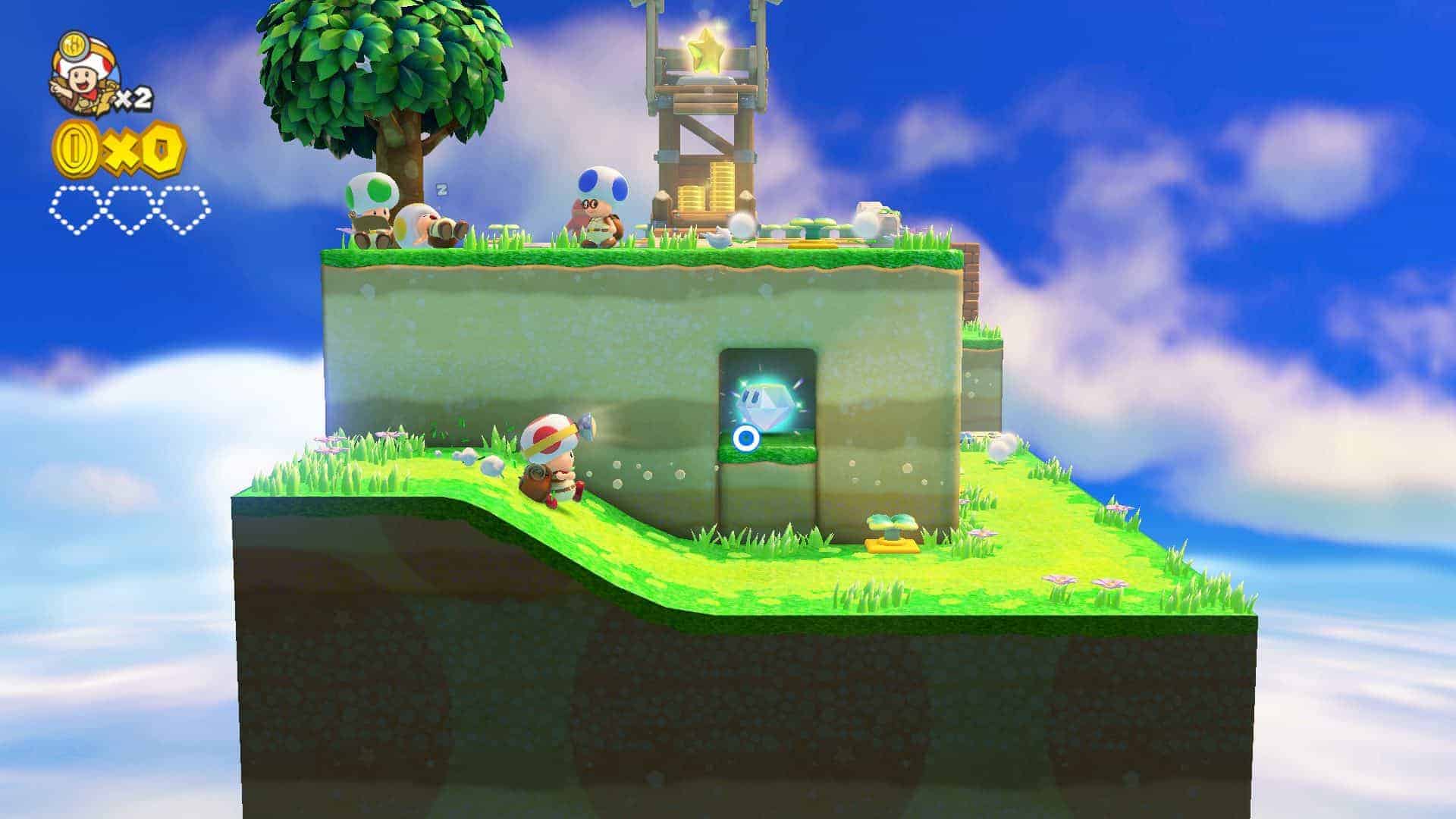 Après avoir découvert une étoile de puissance avec sa compagne Toadette, Captain Toad et celle-ci sont surpris par un oiseau géant du nom de Wingo qui leur vole l’étoile de puissance et kidnappe Toadette. Bien décidé à ne pas se laisser faire, Captain Toad part à la recherche de son amie. Votre but sera de parcourir des niveaux en mode jeu de plateformes pour retrouver les gemmes de puissance, champignons dorés et autres étoiles de puissance. Il faudra quelque peu faire fonctionner vos méninges si vous souhaitez tout trouver. Certains niveaux nécessitent en effet de bouger des plateformes et découvrir des endroits cachés pour retrouver les trésors. Il faut donc jouer réellement sur la 3D et les perspectives en explorant chaque recoin.