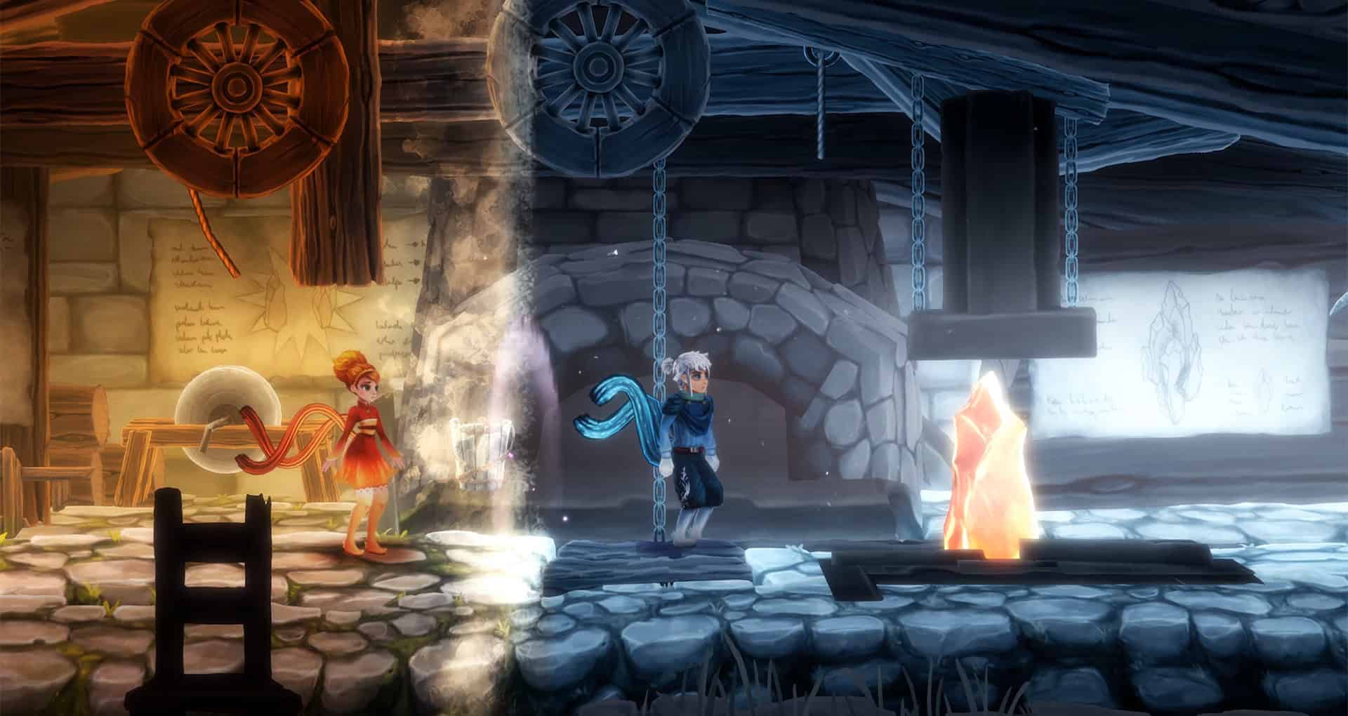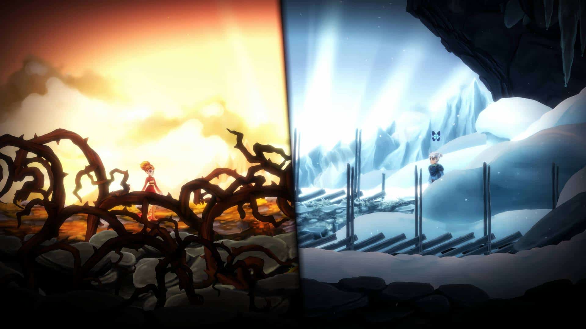 Degrees of separation c’est l’histoire de Rime et Ember, deux êtres que tout semble séparer, a commencer par leurs pouvoirs. L’un maniant le froid et l’autre la chaleur, ils vont se rendre compte que leur sort est inexorablement lié et que ce n’est qu’en s’entraidant qu’ils parviendront à s’en sortir. Ils embarquent donc dans une aventure dans laquelle il faudra résoudre des casse têtes pour collecter des écharpes qui vous permettront d’ouvrir les portes et de continuer votre aventure.