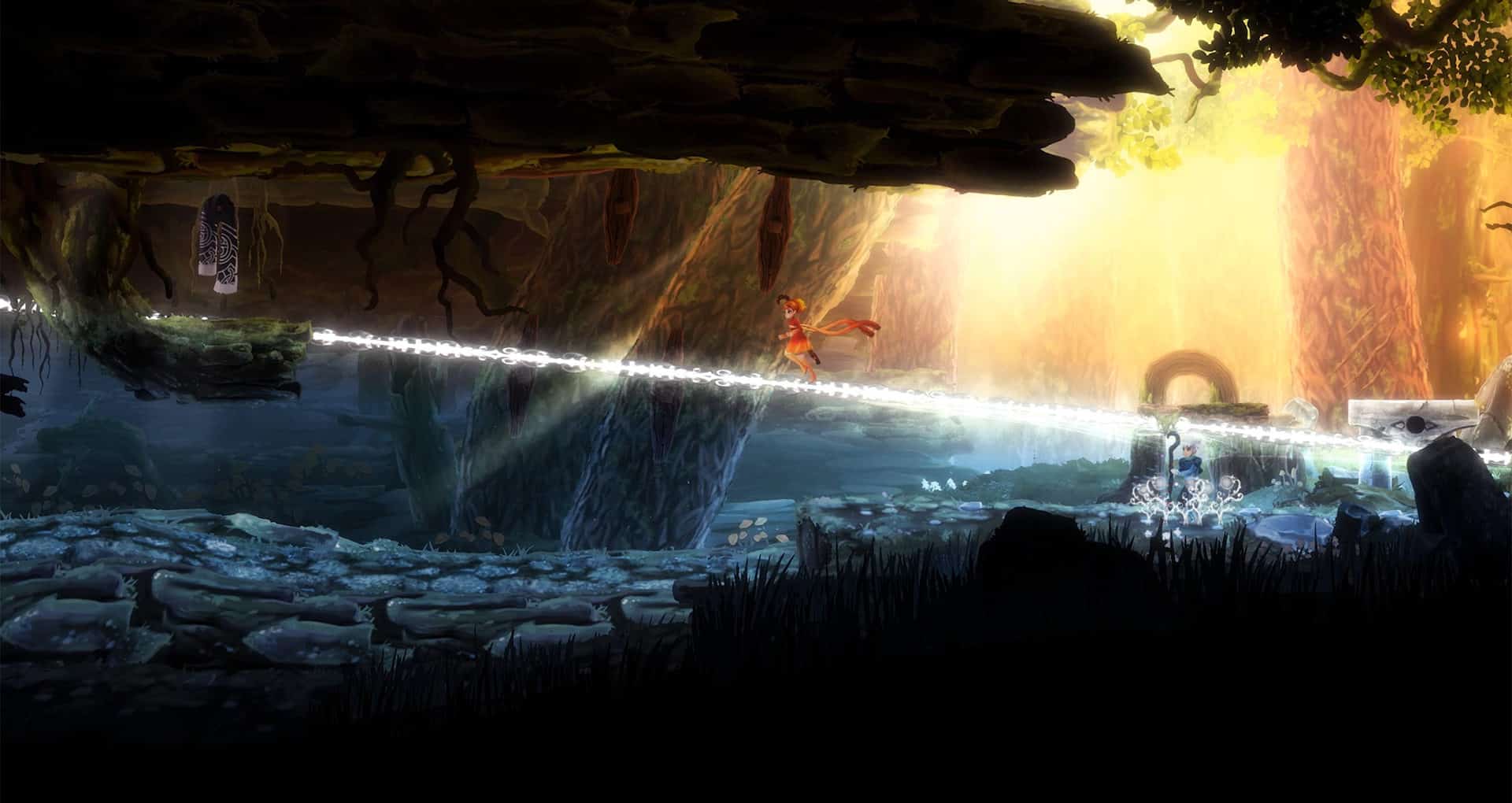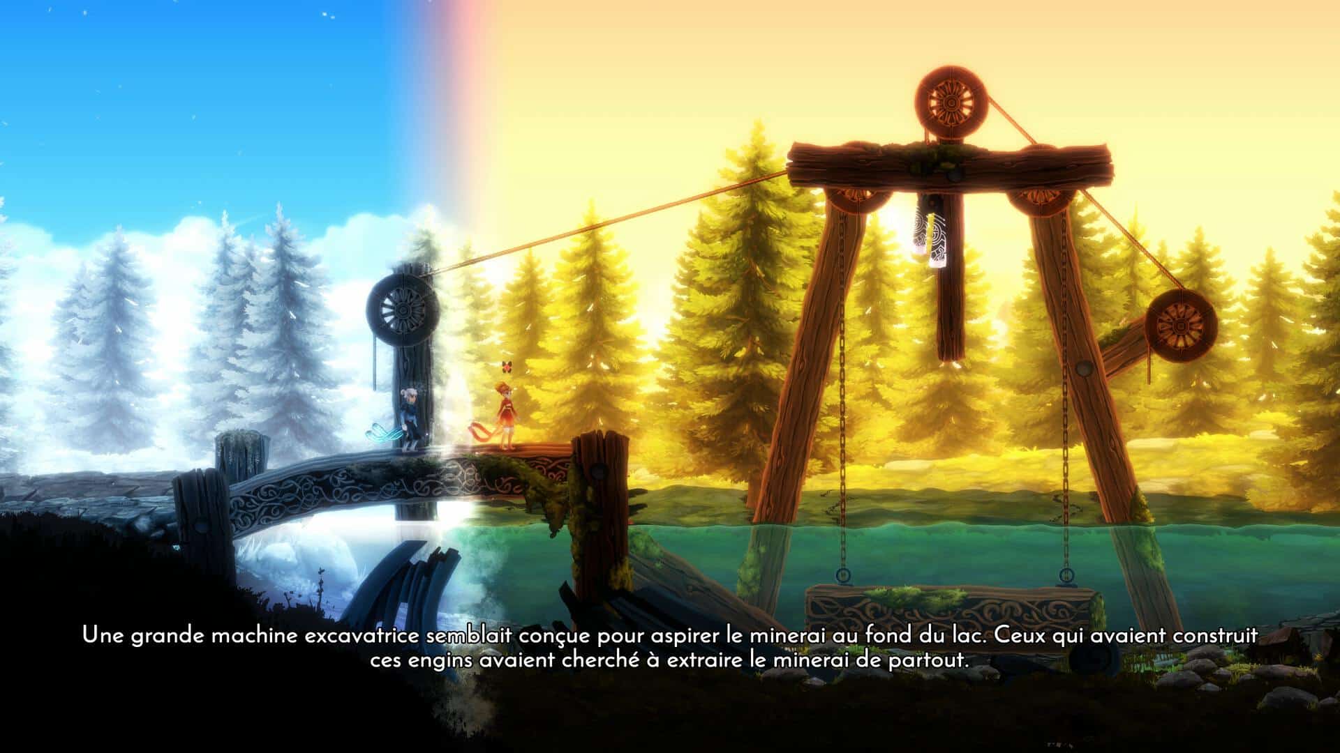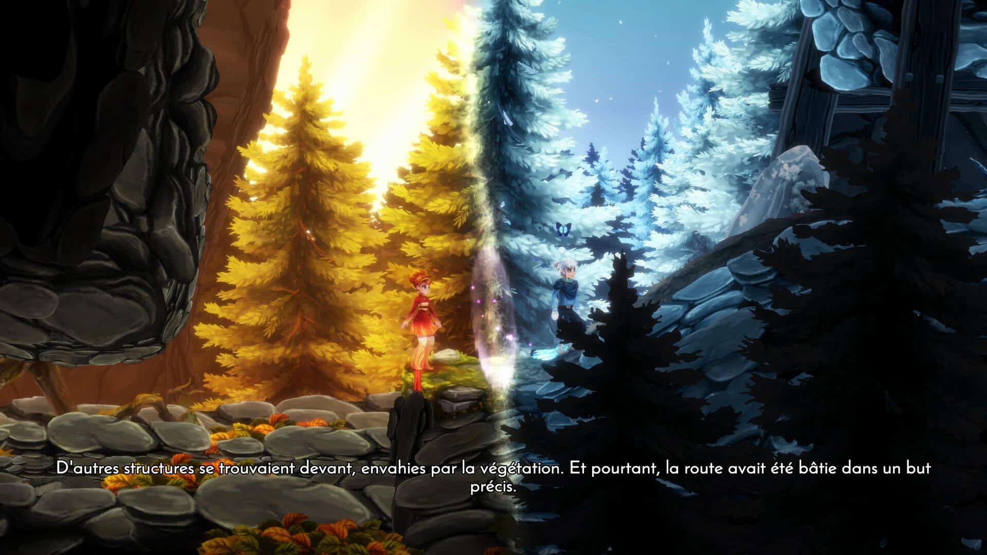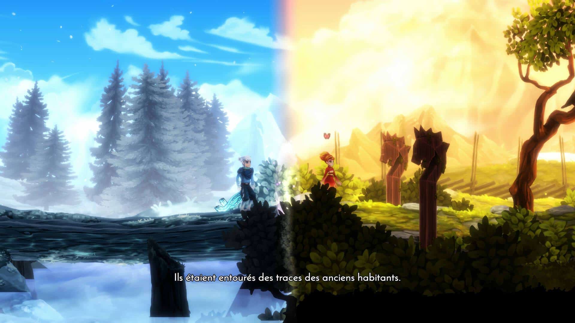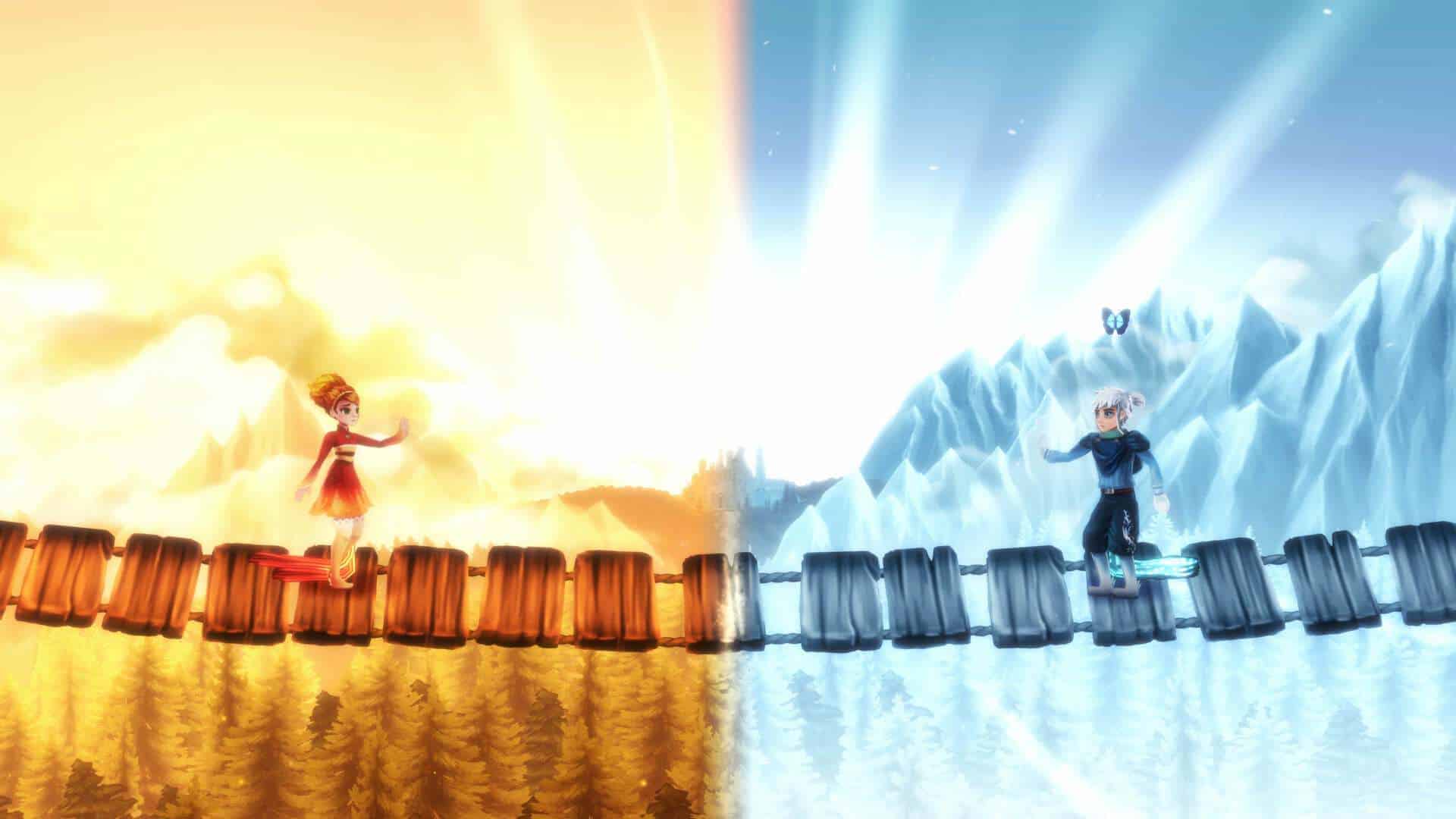 Bien que simple à prendre en main, on se rend rapidement compte que Degrees of Separation sera plus simple à deux. En effet, tout le principe du jeu repose sur les pouvoirs opposés de Rime et Ember. Sauter sur une corde pour prendre possession de l’autre personnage afin que celui ci construise une boule de neige vous permettant de franchir le prochain obstacle pour attraper une écharpe. Bien que l’on puisse enchaîner d’un personnage à l’autre sans problème en une touche, il doit être bien plus simple de faire ça à 2 manettes en simultané. Pour confirmation, voir l’avis de Fred ci dessous.