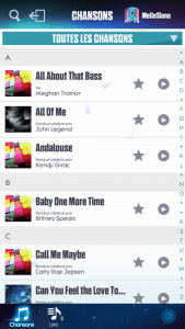On s’attend tous et moi la première, à retrouver dans un tel jeu des titres musicaux internationaux, mais aussi des titres français (COCORICO). A ma grande surprise, on retrouve seulement Kendji Girac avec la chanson Andalouse… Alors là, j’ai été déçue car je m’attendais à retrouver Jul, Black M ou autres, car ça aurait été plus fun et ce sont des chanteurs qui ont du succès en France. Mais bon, malgré tout, vous allez quand même pouvoir vous amuser et vous égosiller sur des chansons mondialement connues. Par contre ce qui est vraiment cool c’est que chaque mercredi vous avez une nouvelle chanson de disponible. Ce qui veut dire que chaque semaine vous découvrez une nouveauté.