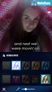 Certes l’utilisation de votre propre smartphone et d’une application gratuite c’est plutôt cool, mais personnellement je ne vois pas trop l’intérêt de me filmer à chaque chanson et surtout ce n’est pas très pratique… Pourquoi me direz-vous? Si on veut avoir un bon rendu, il faut rester de face, bien viser et surtout ne pas bouger un millimètre, ce qui n’est ni simple ni pratique lorsque l’on veut se déhancher en même temps que l’on chante…