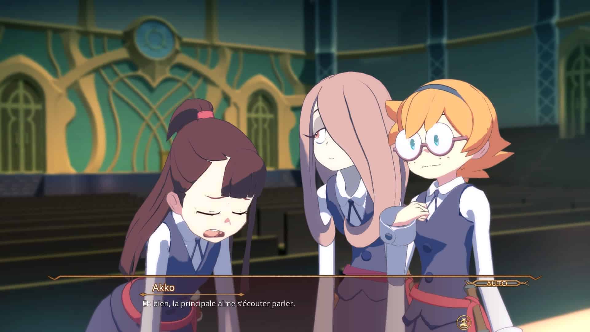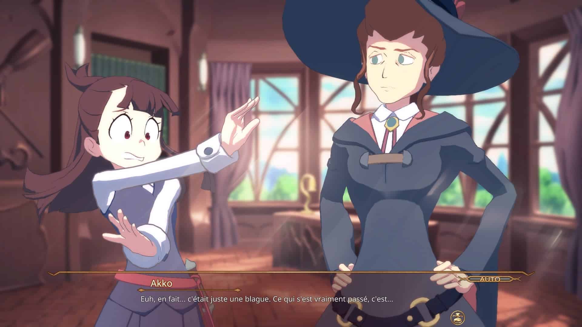 Quand on a la possibilité de tester des jeux afin d’en rédiger un compte-rendu honnête, on tombe sur des titres auxquels on ne s’imaginait absolument pas jouer. Une bande-annonce ou un avis tiers piquent notre curiosité et nous dirigent vers une bonne ou une mauvaise surprise. Dans le cas de Little Witch Academia, elle est très mauvaise ! D’autant plus que les trailers présageaient un jeu à l’ambiance charmante, fidèle à l’anime dont il est adapté. Ah oui, je ne vous ai pas dit : Little Witch Academia : Chamber of Time est adapté d’un anime qui s’est attiré une petite horde de fans. Rien de surprenant, quand on s’intéresse un peu à l’oeuvre, celle-ci prenant de faux airs de Harry Potter au féminin. Personnellement, je ne connais pas bien l’anime et ne m’y suis modestement intéressé que pour les besoins du test. Mais j’espère sincèrement qu’il est meilleur que le jeu…