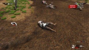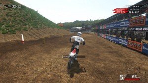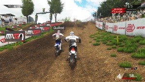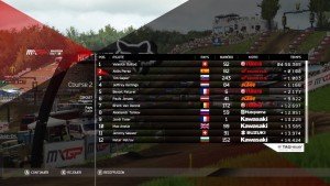 La première course démarre enfin après un loooong chargement. Essais, qualifs, course. Je me suis cassé la tête à foncer durant près de 10min en qualif pour tenter d’avoir une meilleure position sur la grille de départ. Et c’est là qu’on comprend à quel point je suis inculte dans le domaine du MXGP car tous les pilotes démarrent sur une seule et même ligne. Et s’il est vrai que démarrer plus à gauche vous permet de prendre le premier tournant plus court, il n’en est pas moins assez facile de doubler tout le monde dès les premières secondes, quelle que soit vôtre position de départ.