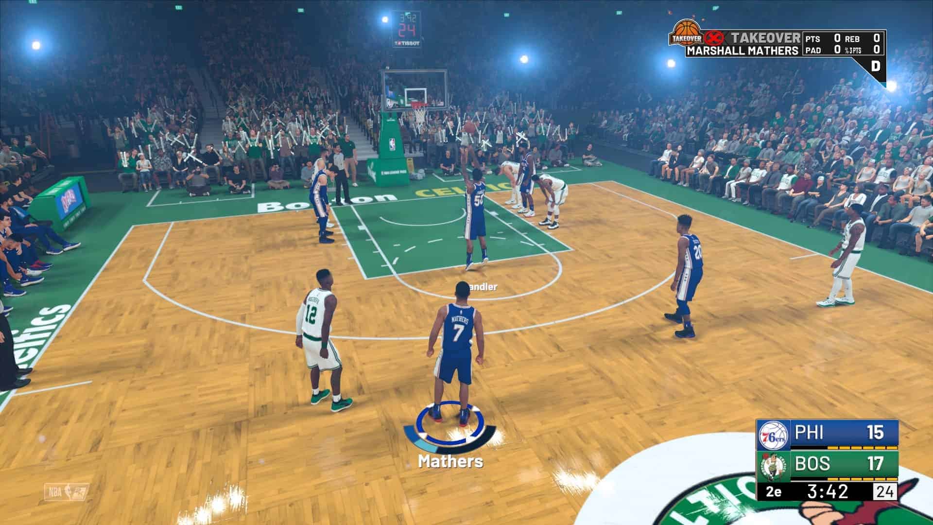 La prise en main reste quand même facile et fluide, même pour un néophyte. Et le dynamisme des matchs est frappant de réalisme. La jauge de tir est placée par défaut proche des mains du joueur, mais peut également être placée au-dessous de ce dernier (comme dans 2k17). Le “TakeOver” vous permettra de vous imposer dans votre partie grâce à vos bonnes actions (passes décisives, entente d’équipe…).