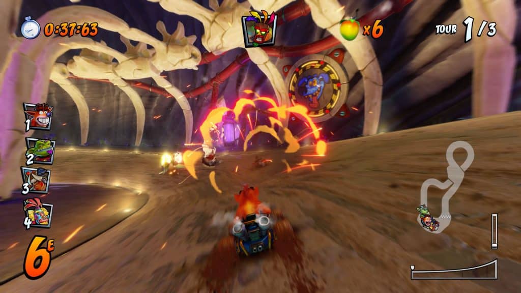 Dans l’épisode original, on disposait de 18 circuits répartis sur 5 mondes très différents ainsi que d’une douzaine de personnages. Ayant la volonté d’apporter un plus par rapport à l’original, les studios nous ont également amené tout le contenu de Crash Nitro Kart. Épisode nettement moins marquant mais ayant ses propres personnages, circuits et options de customisation. Ceci ayant pour conséquence de porter le nombre de personnages à 25, d’ajouter 13 circuits et de permettre au joueur de customiser son kart (à la manière de ce qu’a fait Sonic Team Racing récemment). Ça c’est pour le contenu de base.