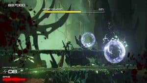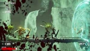 Dans Shadow of the Beast, vous vous retrouvez dans un univers en 2.5 D. C’est-à-dire que tout est sur le même plan, un peu à la façon d’un Ori ou d’un Oddworld mais que les mouvements de caméra vous donneront une impression de profondeur et d’angles de jeu différents. Je dois dire que c’est fort réussi et le point fort de ce jeu se situe clairement au niveau visuel. C’est vraiment beau pour un petit jeu comme ça, on en prend plein la vue je trouve. Avec ses tons pastel, ses monstres super bien dessinés et ses animations (surtout au niveau du sang, rendant magnifiquement), le jeu est un réel plaisir à regarder. Je vous avoue que c’est d’ailleurs cela et l’aspect beat’em all qui m’avait donné envie d’y jouer la première fois. Attention toutefois, à ne pas y jouer devant des enfants.