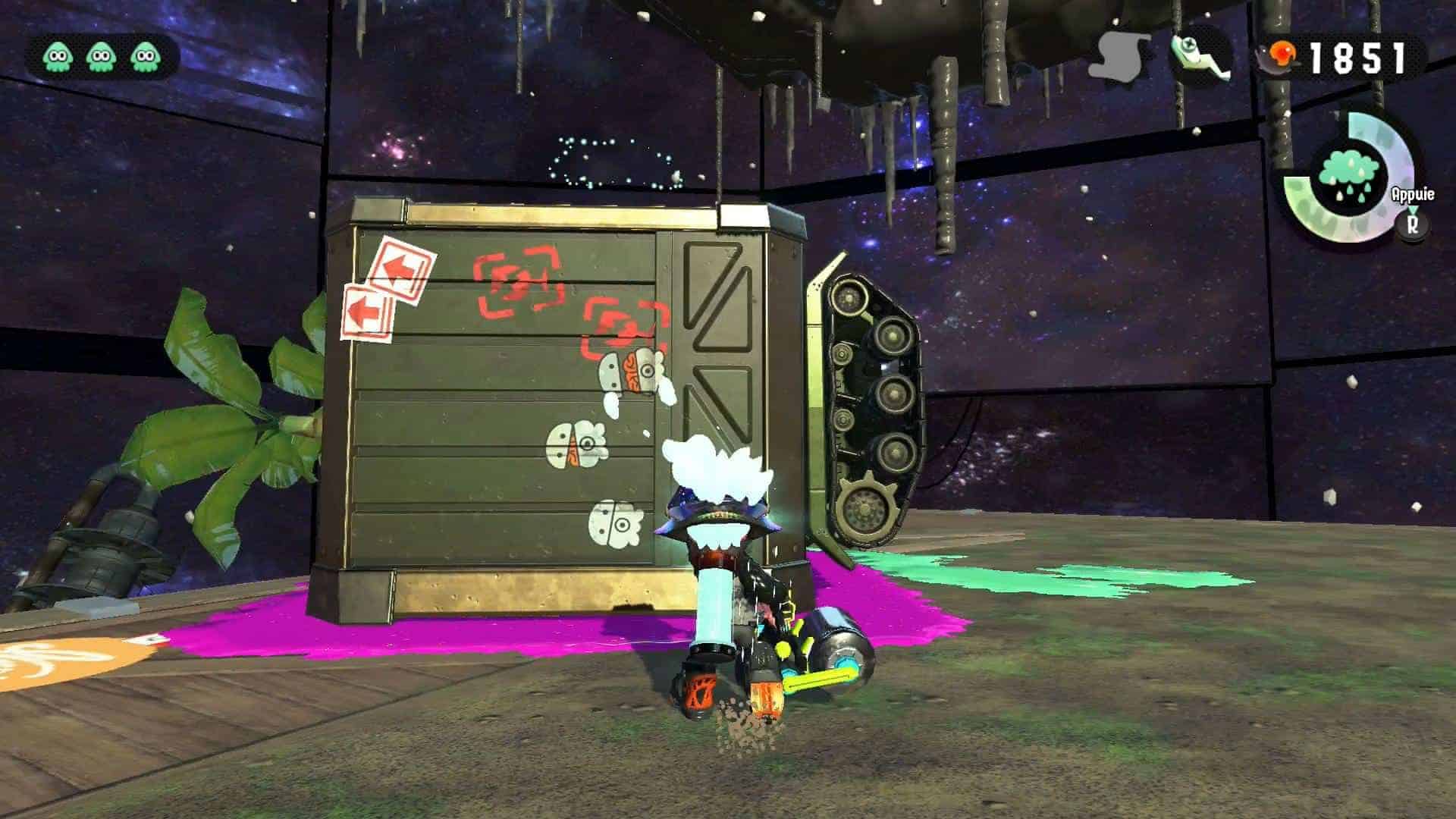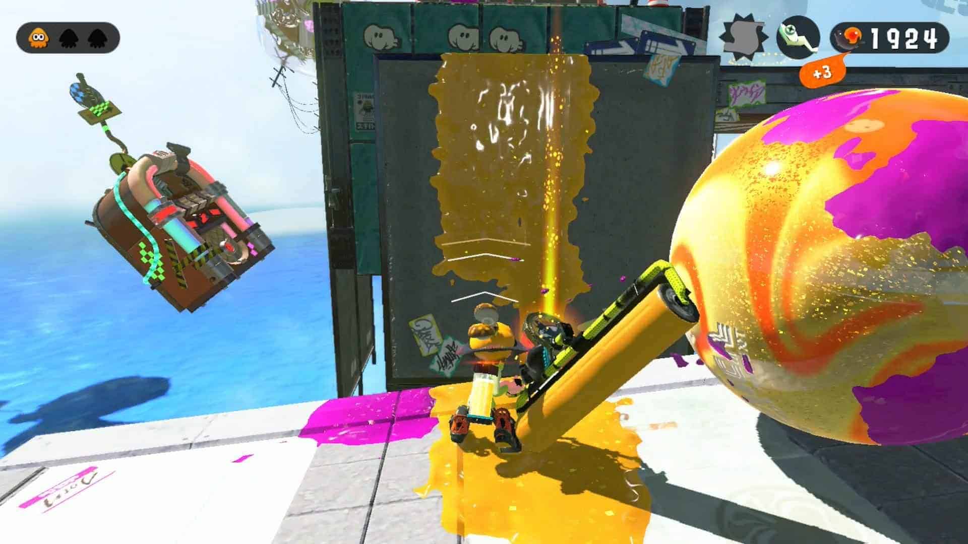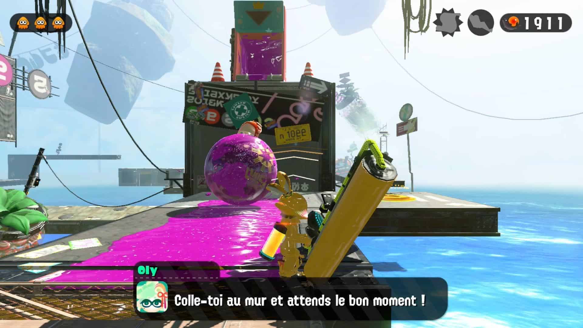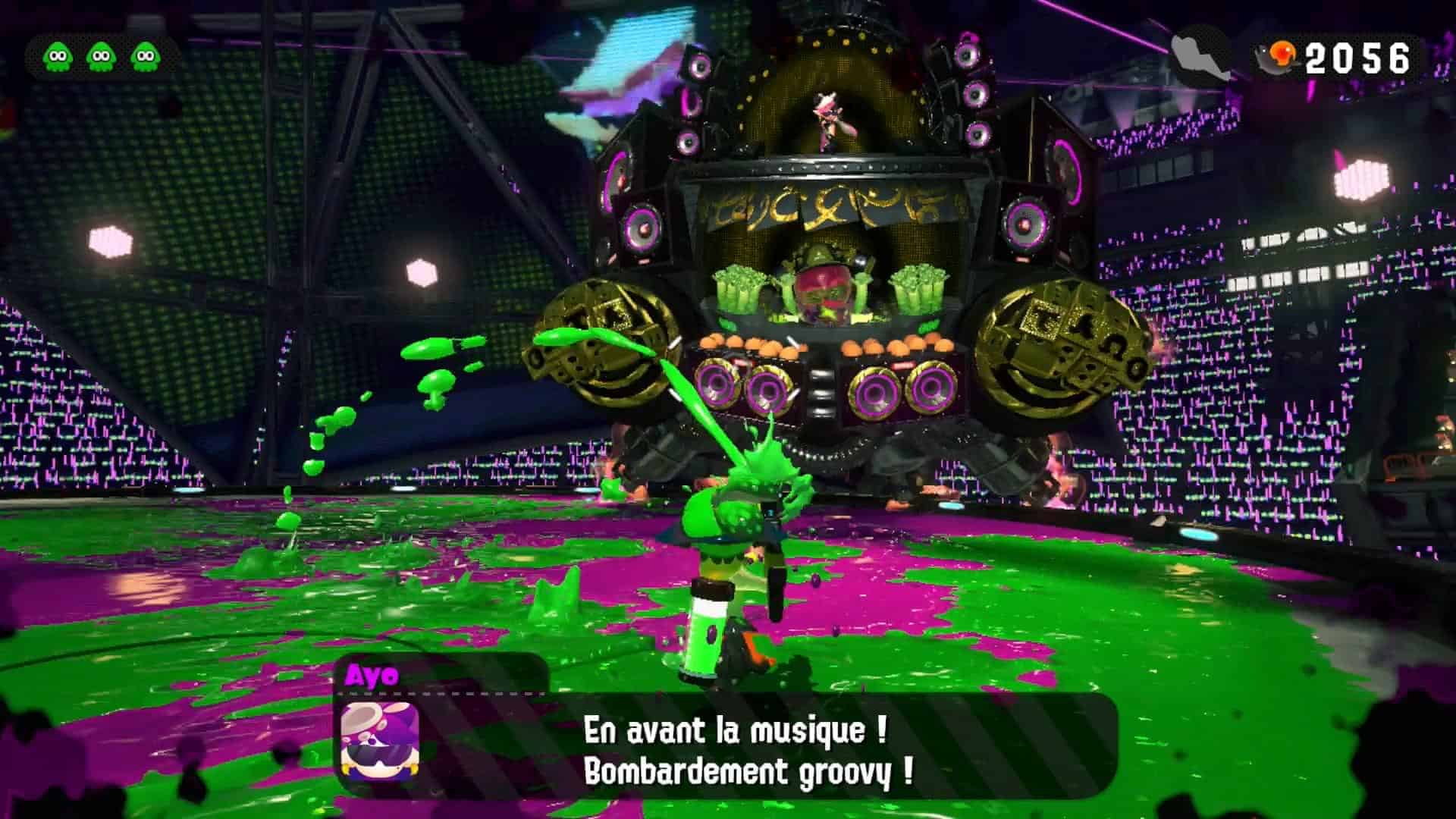 Disons-le tout de suite, si vous n’avez pas une bonne connexion internet, l’intérêt de Splatoon 2 sera très limité. Le jeu dispose bien d’un mode solo mais celui-ci est limité – bien que très agréable – par rapport aux différents modes en ligne. Ce que j’ai énormément apprécié dans le mode solo, c’est que celui-ci mélange le TPS avec les phases de plateforme. Pour ceux qui me connaissent, c’est clairement mon créneau. J’ai donc pris énormément de plaisir à parcourir les niveaux et à affronter les boss super originaux. Votre but sera d’affronter les Octariens pour récupérer les poissons-charge et retrouver Ayo. Vous disposerez d’armes mises à votre disposition par Cartouche au fur et à mesure. Une bonne manière de découvrir le jeu et sa prise en main avant de vous lancer en ligne.