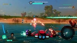 Le vol est normalement sollicité pour quitter une planète et voguer dans l’espace en toute liberté… quand des ennemis ne nous fondent pas dessus. Résultat : des combats spatiaux jouissifs qui restent plutôt lisibles, même si la visée devient une calvaire (sans être frustrante). Malheureusement, dans ce format amoindri de l’exploration interplanétaire, la répétitivité se manifeste d’autant plus vite. Les missions se suivent et se ressemblent, malgré des objectifs différents. On se retrouve finalement à tirer sur des ennemis en nombre, quand on n’affronte pas des boss imposants. Ces derniers proposent d’ailleurs un certain challenge et apportent une variété bienvenue au gameplay, puisqu’il y a des scripts à respecter pour les terrasser.