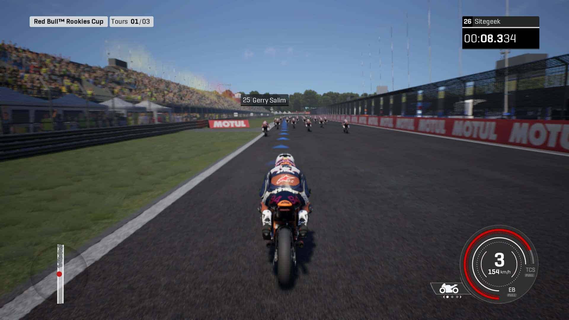 Une fois vos choix faits, chacun de ceux-ci se ressentira dans votre pilotage. Celui-ci est extrêmement précis et pour peu que vous augmentiez un peu le niveau de l’IA, le challenge sera vraiment au rendez-vous. On ressent carrément les effets de sur/sous-virage ainsi que le transfert des masses, chose assez rare sur un jeu de moto car pas forcément évidente à reproduire. Un vrai bon point donc.