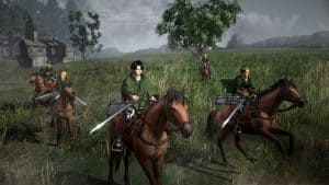 À partir d’ici je ne peux en aucun cas vous garantir de ne pas vous spoiler l’histoire, tout du moins le début. C’est d’ailleurs l’une des première critique que je ferais au jeu. Trop d’infos, trop vite ! Je me suis essayé au jeu durant un peu moins de 4h et au niveau de l’histoire j’en suis déjà à la moitié de la série. Le soucis c’est qu’ici durant 4h ce n’est pas que de l’histoire, sachant que les 3/4 du temps j’étais occupé à jouer pour casser du Titan. Si l’on combine les cinématiques entre les phases de gameplay, j’ai du voir approximativement 30min à tout casser. Ils sont donc arrivés à résumer 14 épisodes de 20min (4h40 pour ceux qui calculeraient encore) en seulement 30 minutes de cinématiques. Je vous laisse imaginer le carnage d’un point de vue intrigue. Bien sûr pour ceux qui ont déjà vu l’anime cela n’est pas un problème, que du contraire c’est cool d’avancer vite vers les scènes importantes qui nous permettent de revivre ce manga, manette en main. Mais pour les autres, vous n’aurez même pas le temps de vous attacher aux personnages qu’ils commenceront déjà à mourir.