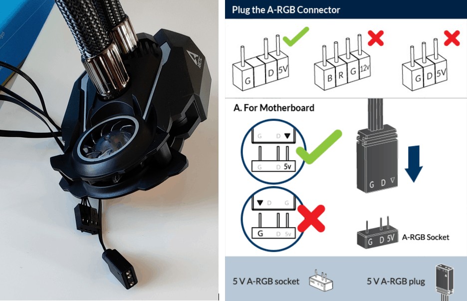 Juste pour terminer, les performances sonores sont identiques à la version non A-RGB et Arctic propose, en fonction de la marque de votre carte mère, quelques conseils de configuration pour optimiser le rendement du watercooling.