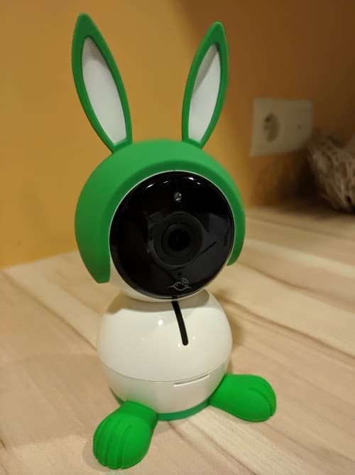 Difficile de passer à côté du look de ce baby phone Arlo, car il arbore des oreilles et pattes de lapin vert fluo du plus bel effet. Parfait pour l’intégrer dans le contexte d’une chambre d’enfant et si vous le souhaitez : vous pouvez même acheter des variantes sur Amazon pour le déguiser en chaton ou en dalmatien.