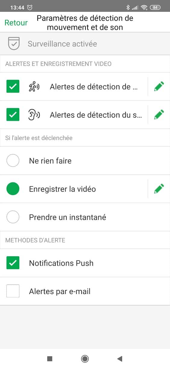 - Surveillance activée
