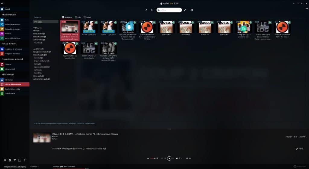 L’ensemble des contenus enregistrés au travers des différentes sections se retrouve dans la partie médiathèque. Rien à dire sur cette partie, l’interface est agréable et le système d’indexation de fichiers des plus efficace. Tout est filtrable en quelques clics et l’on retrouve sans mal l’ensemble des fichiers acquis au fil du temps.
