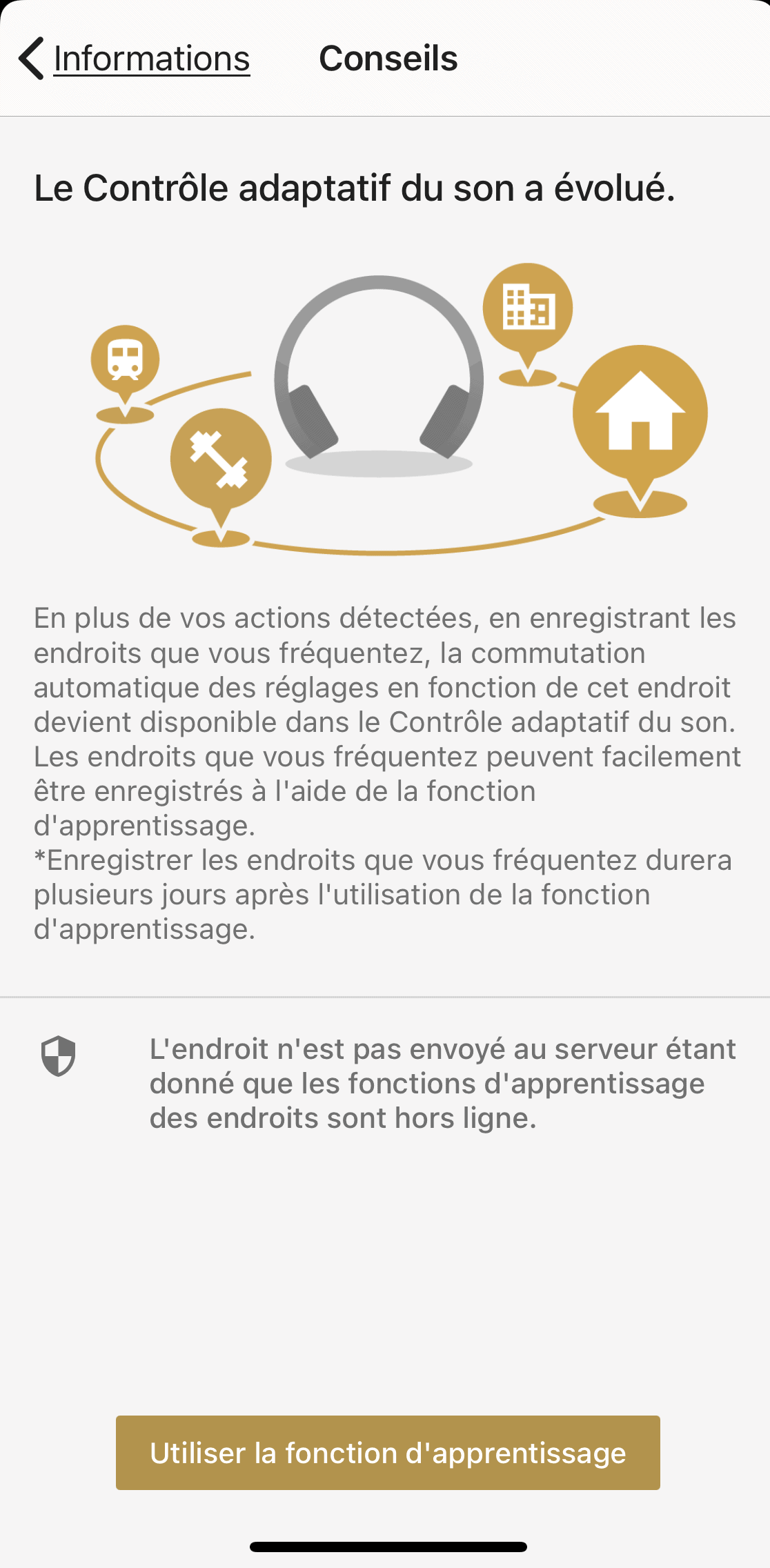 L’amélioration se situe au niveau de la géolocalisation. En effet, le casque apprend, via la géolocalisation donc, à reconnaître les endroits que vous fréquentez régulièrement et ce, de manière à ce que le changement de mode s’effectue plus rapidement et plus efficacement.