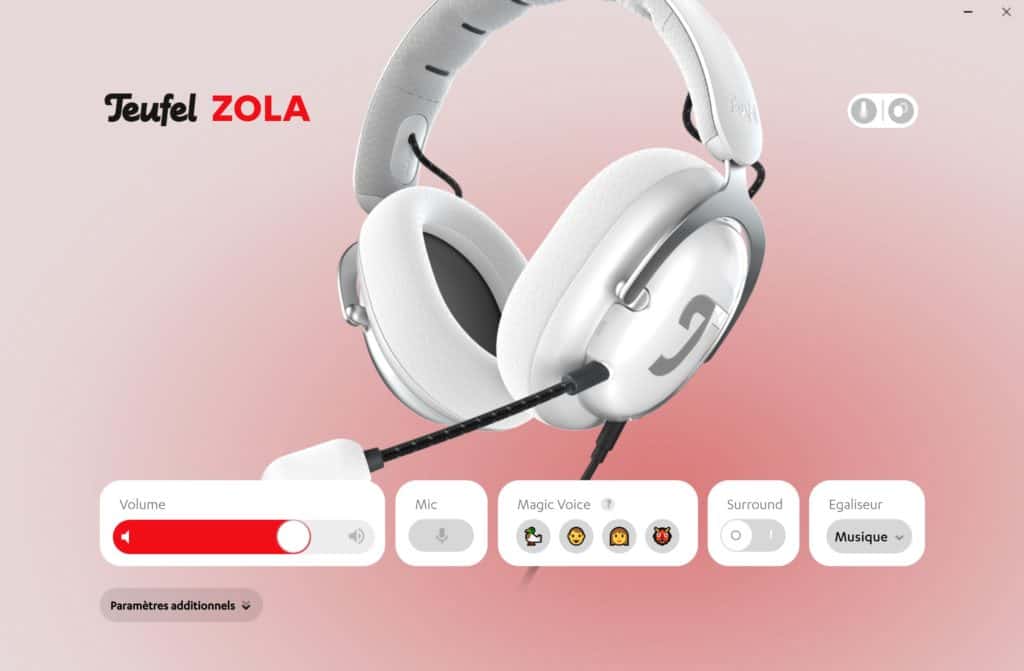 Sur PC, vous aurez un logiciel pour votre Teufel Zola. Pas indispensable mais pratique afin de régler le son, gérer l’égaliseur, activer le son surround ou encore mettre un filtre pour faire des voix étranges comme un canard, le diable…