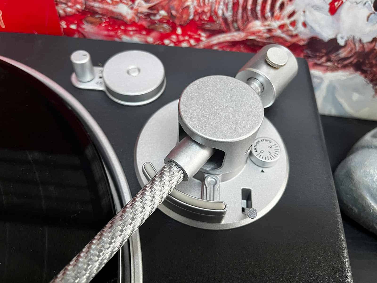 Ce que j’apprécie surtout chez la Hi-Res Carbon, c’est son design sobre et élégant qui lui permet de s’intégrer parfaitement dans n’importe quel intérieur. Ajoutons à cela une facilité d’utilisation hors pair, et on comprend immédiatement que Victrola a mis les petits plats dans les grands. À savoir qu’on ne retrouve qu’un seul bouton situé à l’avant de la platine, permettant d’allumer et d’éteindre l’appareil, mais aussi d’appairer n’importe quelle enceinte Bluetooth d’un seul clic. Le tout est également équipé d’un capteur d’arrêt automatique qui préserve la durée de vie du stylet et d’un bras de lecture en fibre de carbone qui assure une lecture précise et dynamique. Enfin, on retrouve un socle en MDF plaqué offrant une faible résonance et, par conséquent, une restitution sonore ultra-fidèle. Bref, j’aime l’effort qui a été mis dans le souci du détail.