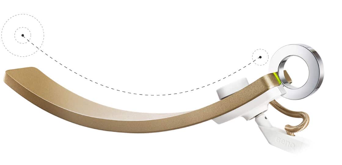Assemblée en quelques minutes avec une seule vis à serrer, la lampe BenQ WiT fonctionne instantanément. Le système pour l’allumer, ainsi que sa forme, sont des clins d’œil à la lampe du génie d’Aladdin puisqu’il faut frotter la boucle en métal pour l’allumer et que les lignes sont inspirées de la célèbre lampe orientale.