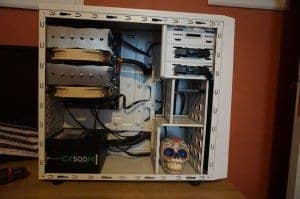 A l’intérieur, le BitFenix Neos est prêt à accueillir tout type de configuration. Compatible avec les cartes mères Mini-ITX, mATX, ATX, il supporte les cartes graphiques de grandes tailles (30cm), les ventirads imposants (16Cm) et permet de placer jusqu’à 6 disques durs (3x 3.5 et 3x 2.5).