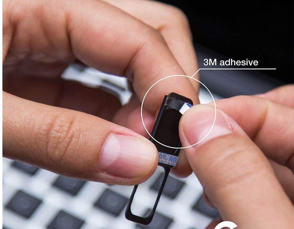 Comme le suggère la photo en haut de l’article, un simple sparadrap, un bout d’autocollant ou un chewing gum (oui c’est dégueulasse) et la caméra ne verra plus rien. Si ces solutions fonctionnent, elles sont généralement éphémères et brouillonnes. Pour une solution durable, il existe de nombreux accessoires spécifiques que je vais vous présenter.