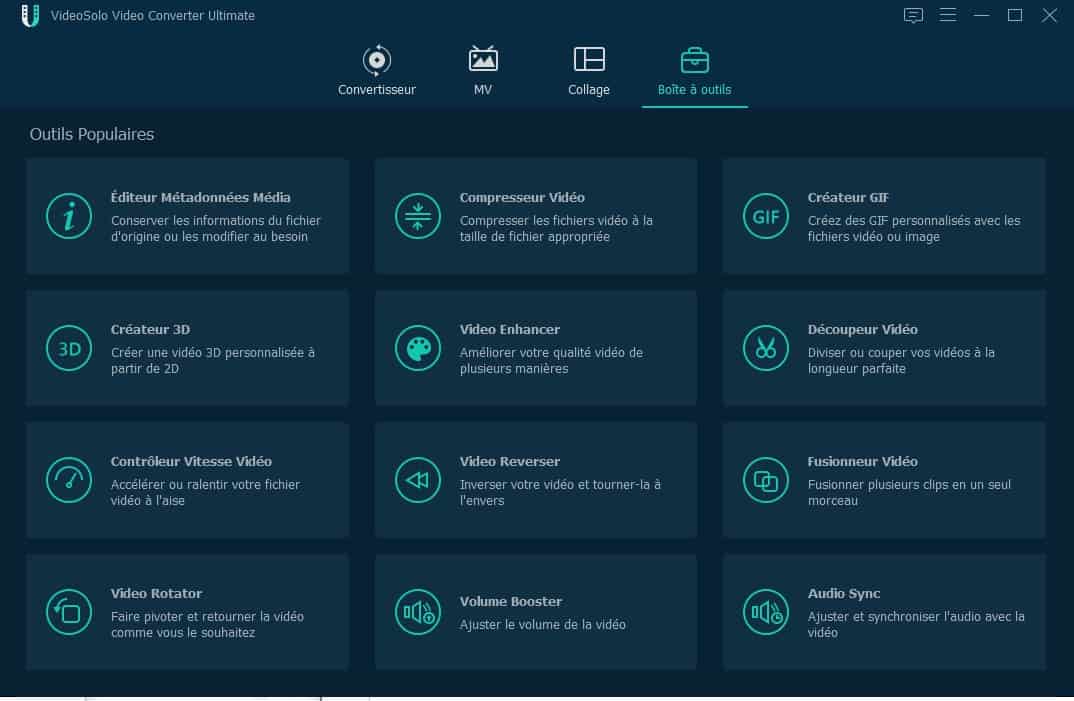 En plus de convertir tous les formats vidéo et audio, VideoSolo possède de nombreuses fonctionnalités pour l’édition de vos vidéos, parmi lesquelles un éditeur de balises, un coupeur vidéo, des options de rotations, de rognage, de division ou fusion de vidéos.